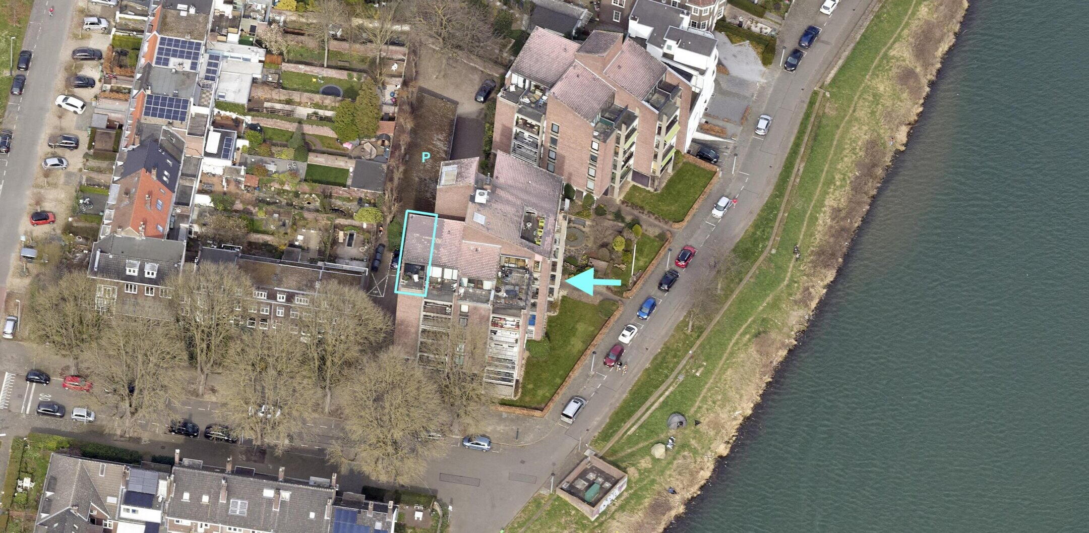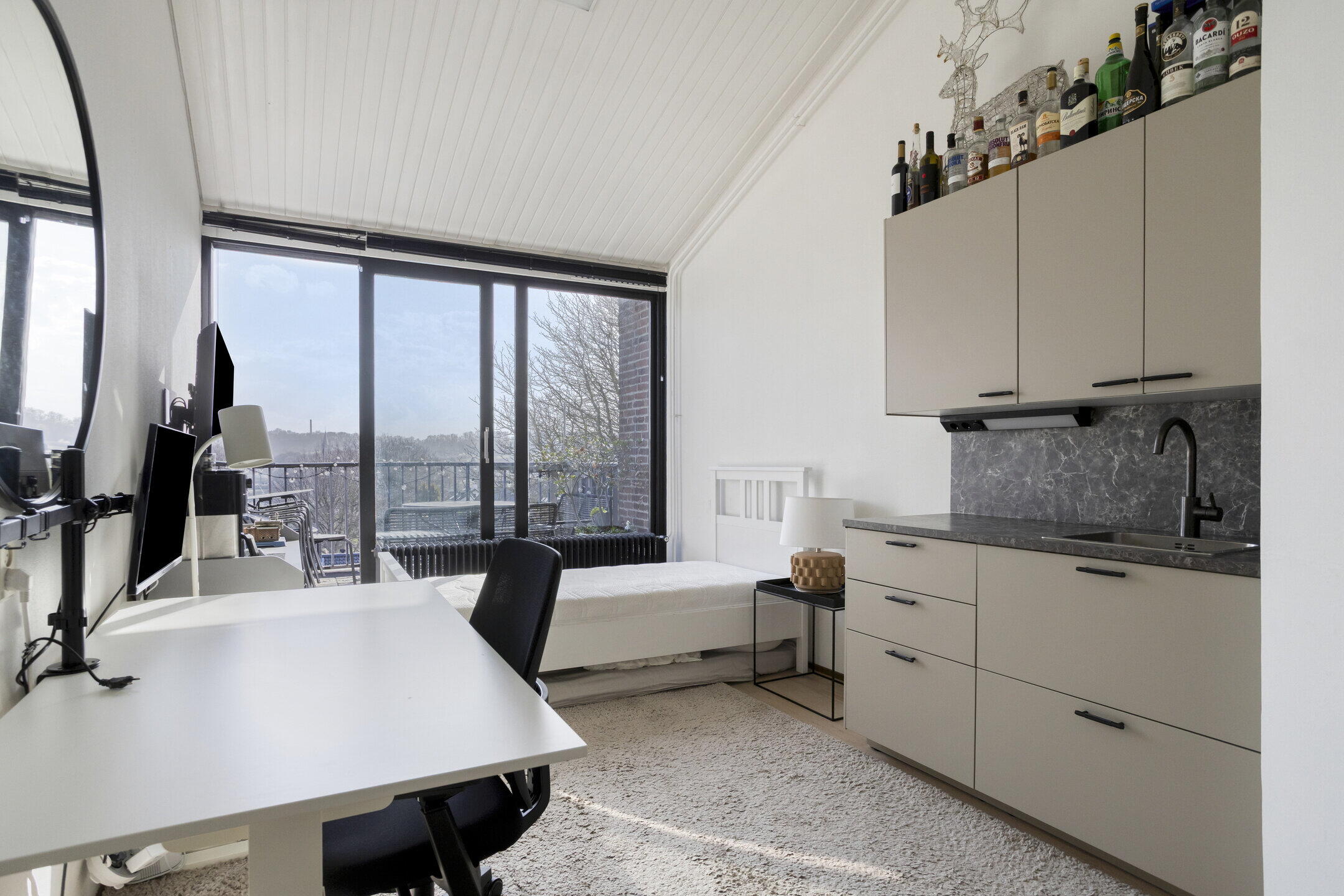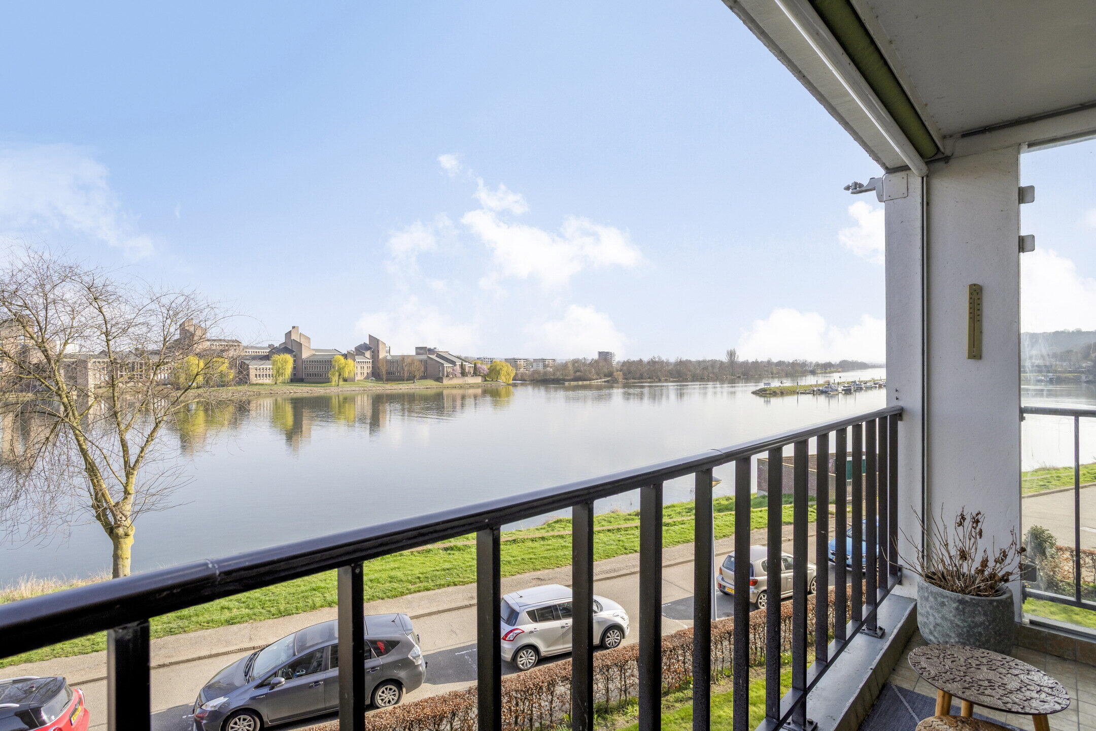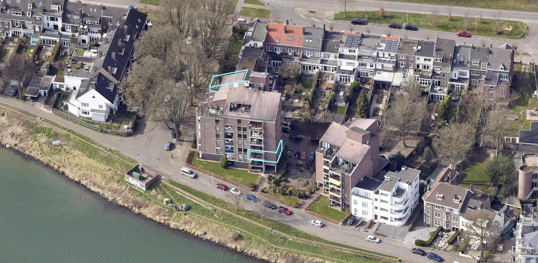 - Balkon (ca. 7 m2, afm. 3,02 x 2,32 m) met een panoramisch uitzicht over de Maas richting de jachthaven en de Sint Pietersberg;