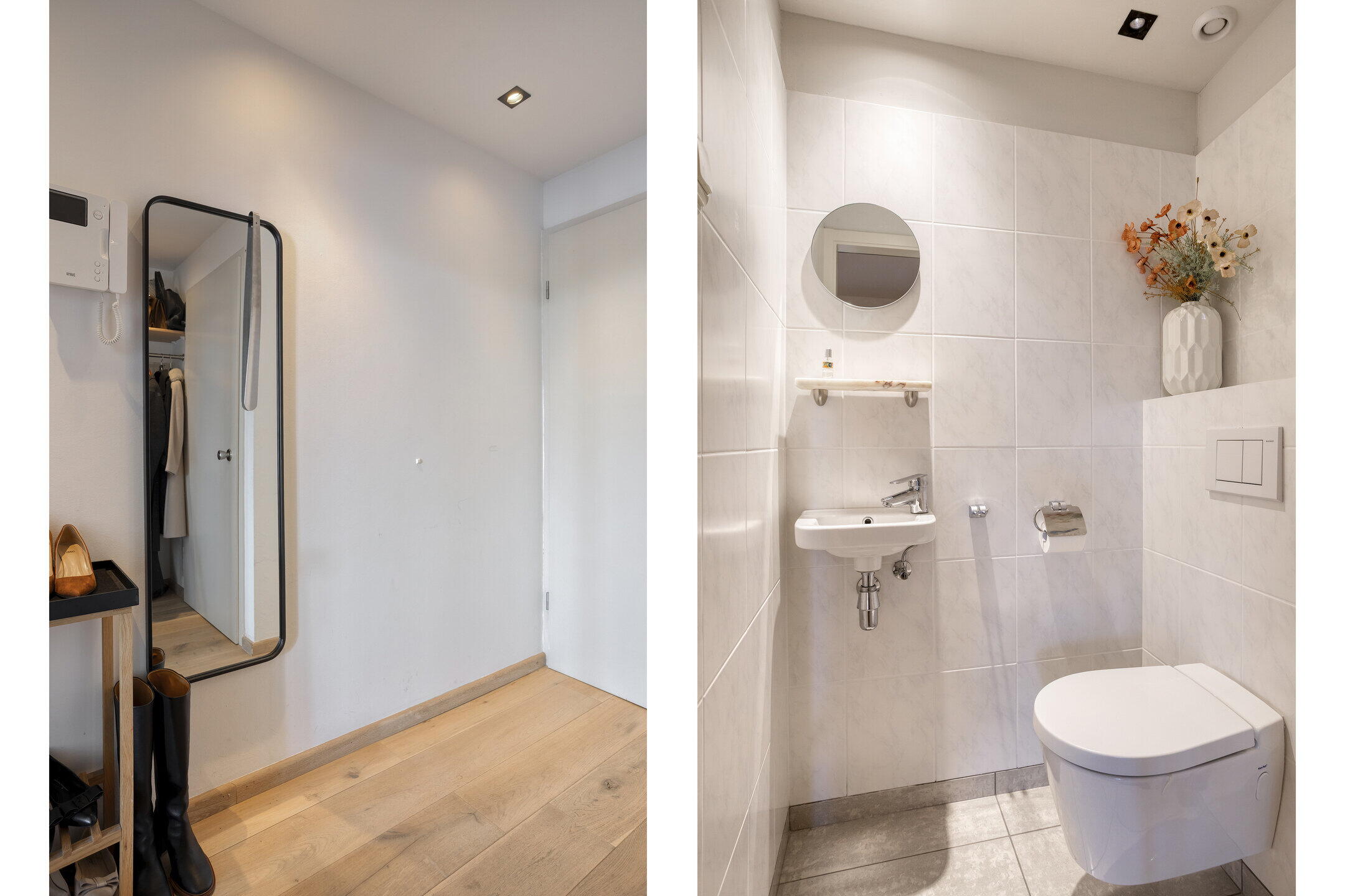 - Moderne gastentoilet met wandcloset en fonteintje;