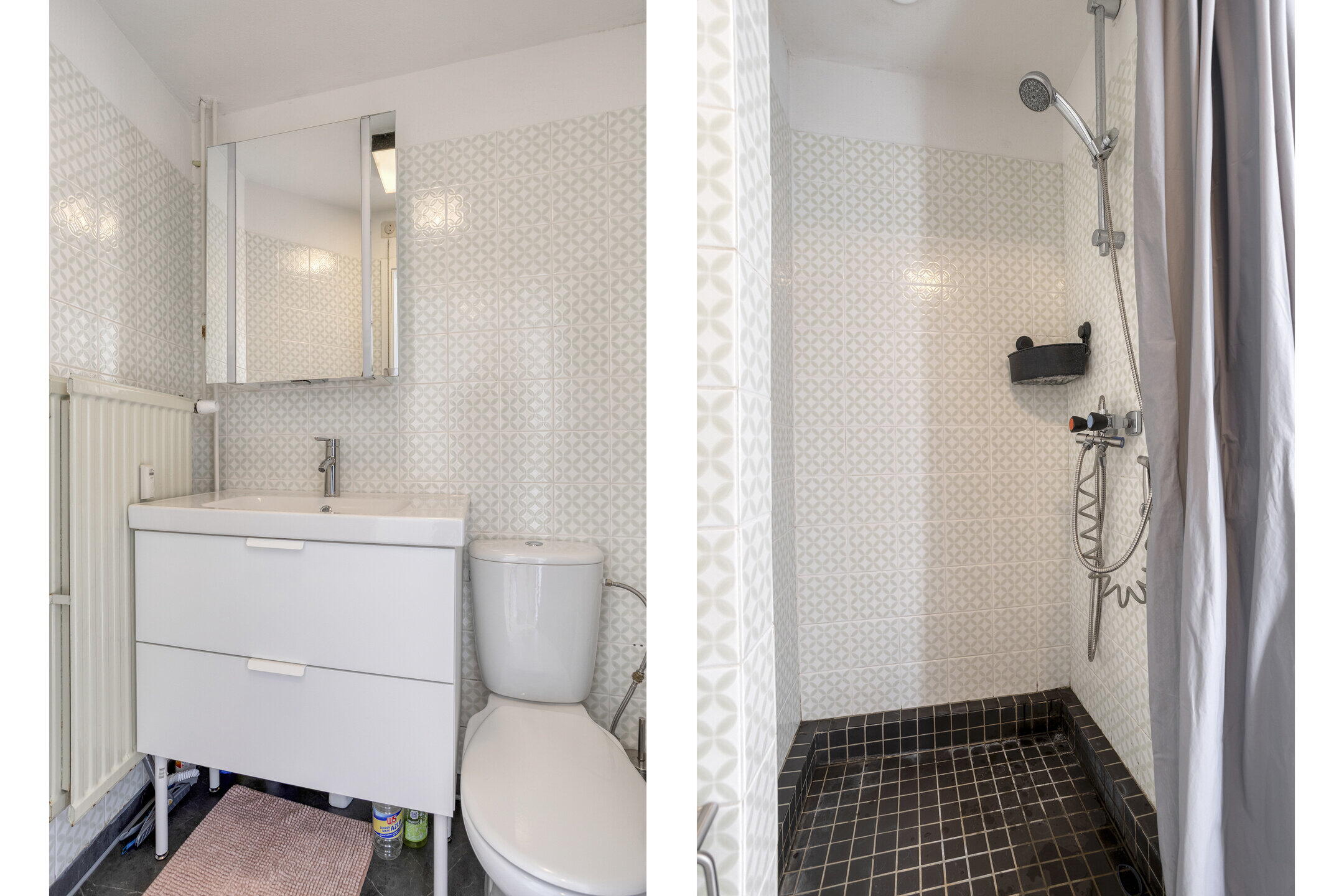 - Toilet, douche, wastafel douche, wastafel, wasmachineaansluiting