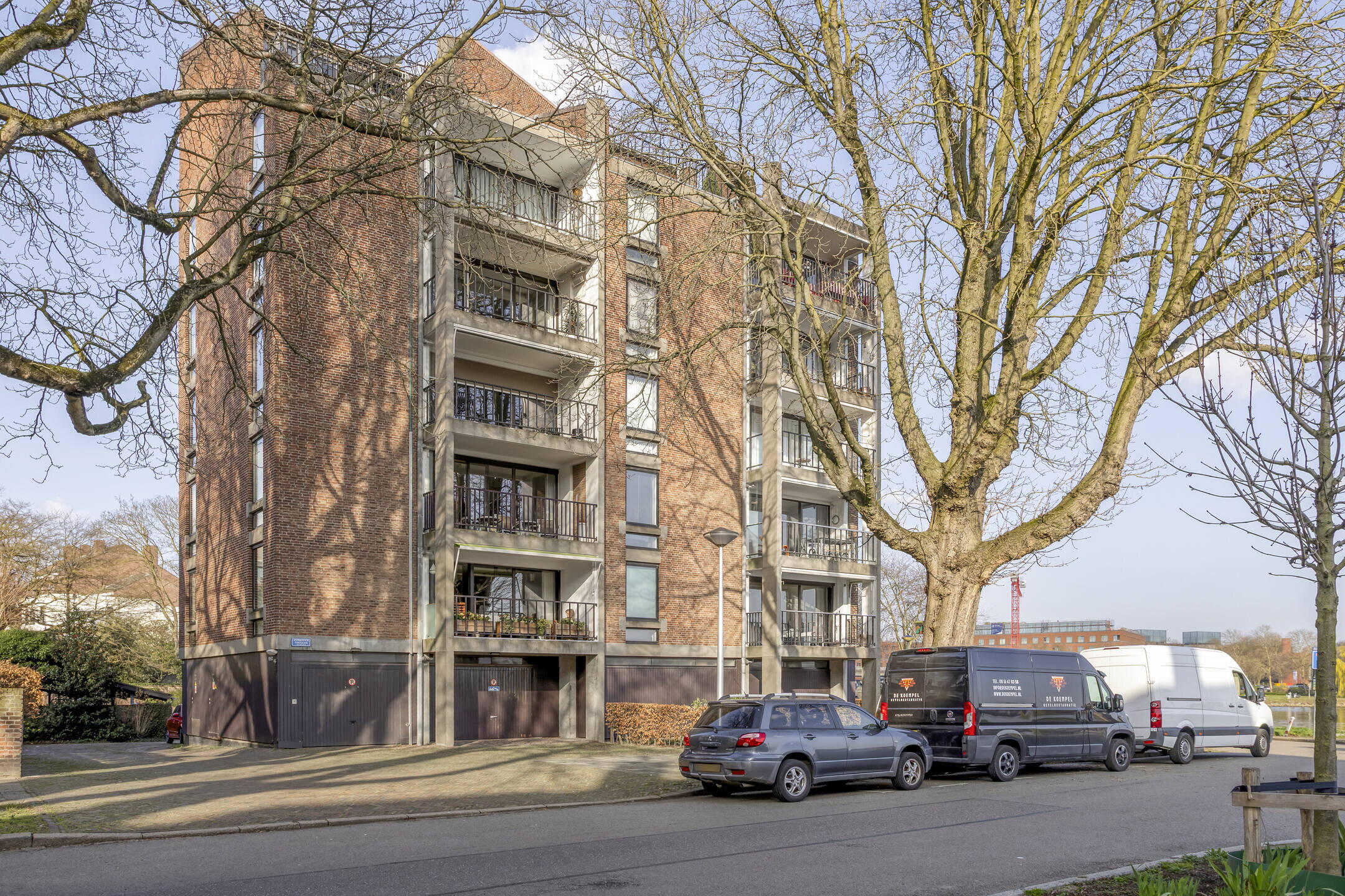 - Balkon (ca. 8 m2, afm. 4,75 x 1,93 m), overdekt en v.v. zonwering, oost-zuid oriëntatie, prachtig uitzicht over de Maas;